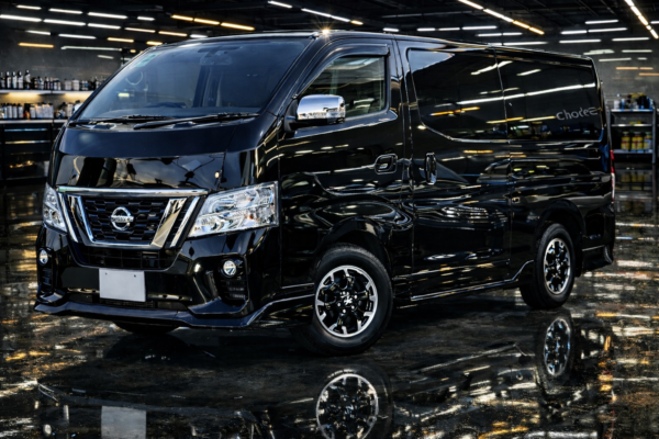 2020年11月発売の日産NV350キャラバンバンは、2Lガソリンの「プレミアムGX」を中心に、特に特別仕様車「ブラックギア」などの展開で、上質さと実用性を両立したモデルです。プレミアムGXグレードはブラック基調の内装、オートエアコン標準装備など、乗用車のような快適性と機能性を備えています。