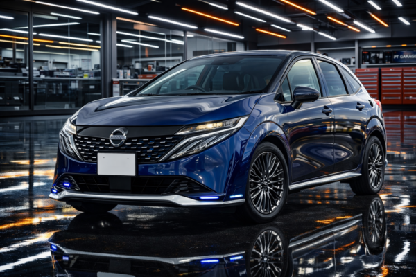 外装、内装の細部に至るまで「上質」にこだわった、コンパクトカー「オーラ」。ラインアップは、最高出力100kW、最大トルク300N・mのモーターによる力強い加速、そして、なめらかさや静粛性なども向上した第2世代「e‐POWER」を搭載する「G」、「G レザーエディション」、全車速域において4輪すべてを強力なモーターで駆動・制御する次世代電動4輪駆動システム「e‐POWER 4WD」を搭載する「G FOUR」、「G FOUR レザーエディション」、「G」、「G FOUR」をベースとしたカスタムカー「オーテック」、「オーテック FOUR」、「オーテック スポーツスペック」、NISMO専用のフロントグリルなどを採用した「ニスモ」、「ニスモ チューンドe-パワー4WD」を設定。エクステリアは、フロントグリルに新時代のデジタルVモーションを採用。日本の伝統工芸を感じさせるデザインのグリルをヘッドランプ下までワイドに広げ、クルマの存在感を引き立てるとともに、ヘッドランプ下に、ボディカラーと同色、またはダークメタルグレーのアクセントを施し、先進感を演出。また、ウイング形状のフロント・リヤバンパーで、e‐POWERの俊敏な走りを表現。新デザインの17インチホイールは、見る角度によって光と影が織りなす移ろいが美しく変化する、モダンで先進感のあるデザインを採用した。インテリアでは、グレイッシュブラウンの色合いが特徴の大型狩猟犬をモチーフとした内装色「ワイマラナー」を新たに追加。モデル名「オーラ(AURA)」のアルファベット「A」をモチーフにしたモノグラム柄のジャガード織物と合皮のコンビネーションに、ブルーグリーンのステッチを施したシート地を採用し、高級感ある風合いを演出。運転席のパワーシートを新たに全車標準装備。リフターやリクライニングの調整幅を広げ、より多くのお客さまのドライビングポジションに対応可能となった。今回、一部仕様向上を行い、走行中に車両や歩行者を検知し衝突回避をアシストする「インテリジェント エマージェンシーブレーキ」の左右検知範囲を大幅に拡大することで、左右から走行してくる自転車などに対する検知性能を向上させるとともに、各種最新の法規に適合した。また、後席への人や荷物の置き去りがないように、降車前にドライバーへお知らせする「後席リマインダー」を全グレードに標準設定した。