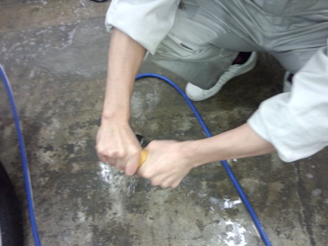 傷をLEDライトにあてながら 何度もチェックして ポリッシャーをかけます!