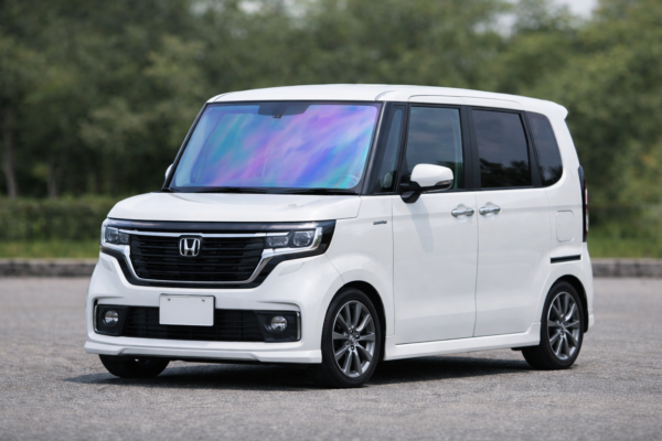 🌈 ゴーストフィルム2は、光の当たり方や見る角度によって反射色の表情が変わるタイプで、N-BOX JF5 のフロント周りに個性的な印象を加えたい場合に候補として考えやすいと感じました。軽自動車でもフロントガラスの見た目を重視したい方には検討しやすそうです。