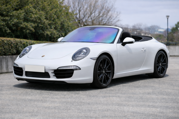 🚗 ポルシェ 911 カブリオレ(991/991MA171 H23.11〜)のフロントガラス形状を前提に設計されたカット済みフィルムで、低く寝たガラス角度や湾曲の強い形状を含めて検討しやすい構成です。オープンモデルならではのフロントガラス存在感が大きい車両のため、施工部位が明確にフロント専用として整理されている点は、比較検討時にも把握しやすい要素といえます。