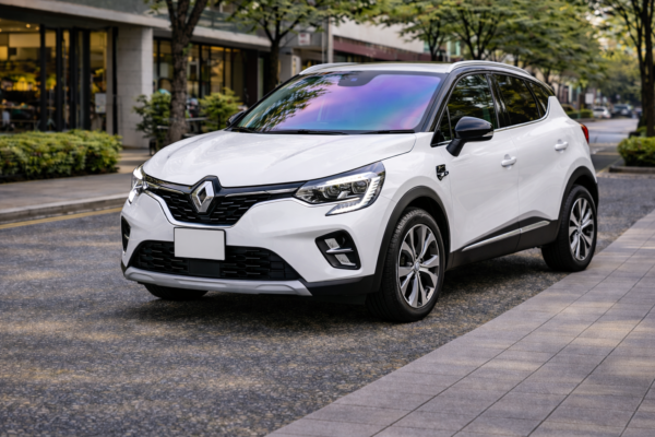 🌈 ピュア ゴーストML91は、淡い青紫からバイオレット系の色味を基調としたゴースト系フィルムとして知られており、光の当たり方や見る角度によって表情が変わるプリズム感をイメージしやすい点が特徴です。ルノー キャプチャーのシャープで立体感のあるフロントデザインと組み合わせた場合でも、色味が過度に主張しすぎず、フロントガラスに自然な変化を与える印象があります。キャプチャーの都会的な雰囲気を活かしながら、さりげない個性を加えたい場合にも想像を広げやすい組み合わせだと感じました。