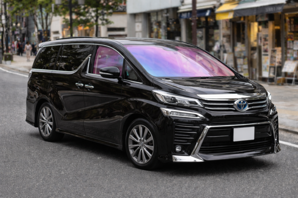 🌈 ローズ ゴースト88は、淡いピンク系を基調としたゴースト系の反射が特徴で、ヴェルファイア AAHH40Wの運転席・助手席ガラスに馴染みやすく、角度によって表情が変わる様子を把握しやすいと受け取りました。フロントガラスではなく、あくまで左右前席ガラスを中心に色味を確認できる点が、この商品の性格を捉えやすくしています。