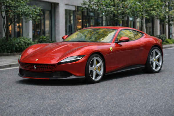 🚗 フェラーリ ローマのフロントデザインを活かし、運転席・助手席にスパッタゴールド透過率80%を想定した自然な発色イメージ。🌈 角度によって淡いゴールドの反射が変化し、ボディカラーとの一体感を意識。☀️ 日中走行時の光の入り方を想定し、明るさを保った印象。🛠️ 車種・年式に合わせたカット済み構成を前提に、貼付イメージを整理。✨ 車と背景のみで構成し、実車感を重視。