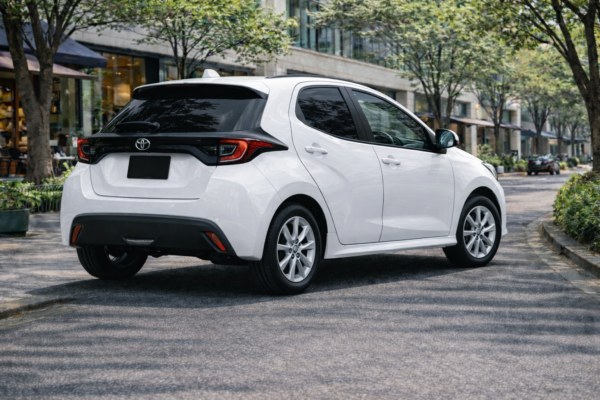 🌈 リアガラスおよび左右リアサイドガラスを想定した断熱スモークタイプで、コンパクトカーであるヤリスの外観イメージを大きく崩しにくい落ち着いた印象。