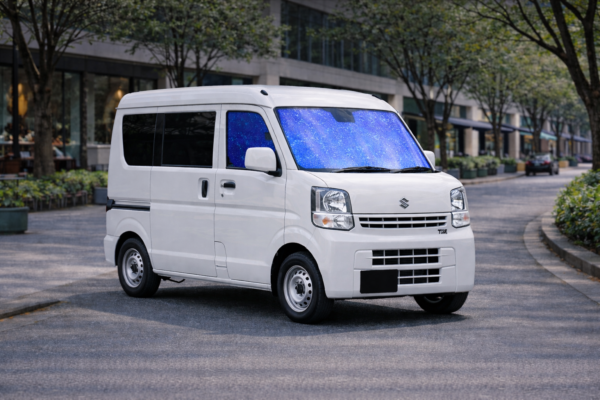 🚗 スズキ エブリィ バン(ワゴン)ハイルーフ DA17V(H27.2〜)の運転席・助手席ガラス形状に合わせて設計されたカット済み仕様のカーフィルムです。