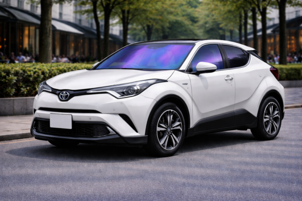 淡いブルー〜パープル系のオーロラ発色が、C-HRのシャープなデザインと自然に調和します。
