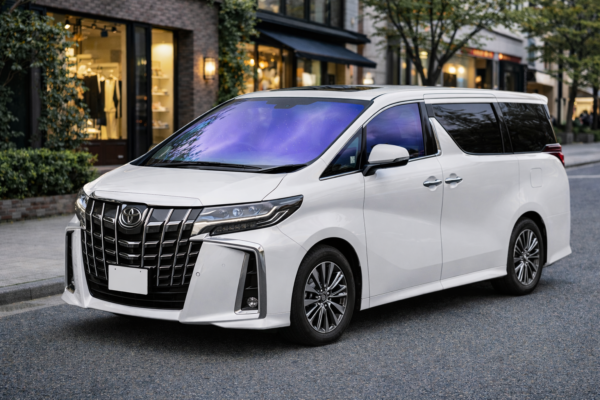☀️ 日中の走行時や街中の自然光でも、フロント周りのガラスに独特の色味が現れ、アルファードの存在感をさりげなく引き立てます。