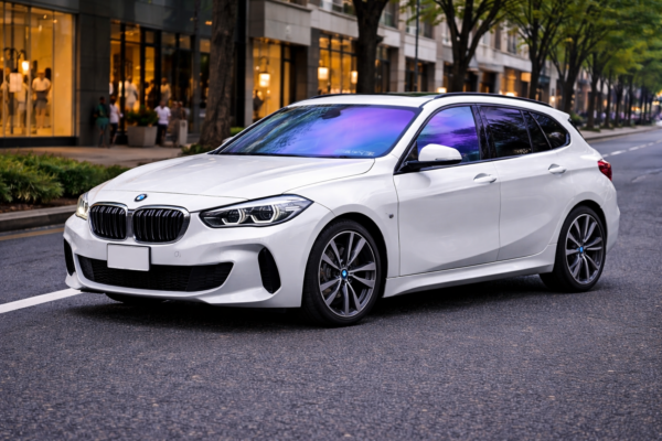 🚗 BMW 1シリーズ 5ドア(F70/82GE15/R6,11~)のフロントガラス・運転席・助手席に対応した専用カット済みカーフィルム構成です。新型F70のガラス形状に合わせた設計を前提としています。