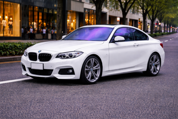 🌈 淡いブルー〜パープル系のオーロラ発色が角度によって自然に変化し、BMW 2シリーズ クーペのコンパクトでスポーティなシルエットと調和します。