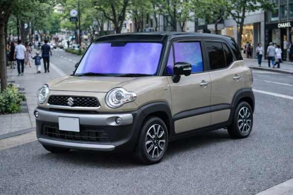 🚗 スズキ クロスビー MN71S(H29.12〜)に適合する、ゼノン2オーロラ84の運転席・助手席専用カット済みカーフィルムです。🌈 提示された基準画像のフィルムカラーを一切調整せず、そのままフロントガラス・運転席・助手席の3面すべてに同等カラーで採用する前提の構成です。☀️ 明るめで淡い青紫系の発色を基準とし、濃さを強調しない自然な色味と、角度による穏やかな変化のみを想定しています。🛠️ 車種別カット仕様のためガラス形状に沿って合わせやすく、貼付範囲はフロント周りのみ、リア3面・5面はプライバシーガラスとして表現されます。✨ クロスビーの個性的なデザインを損なわず、ゼノン2オーロラ84本来の色味を視覚的に確認しやすい商品構成です。