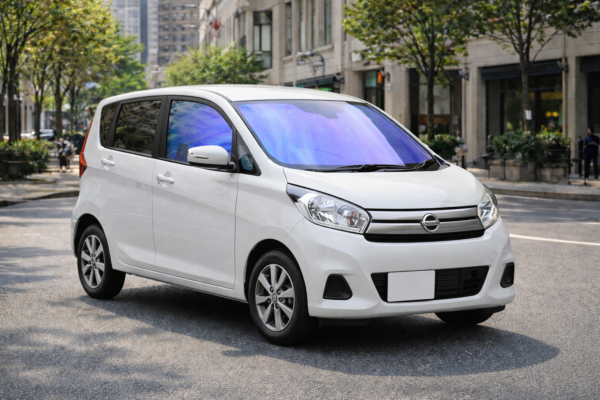 🚗 日産デイズ B21W(H25.6〜)のガラス形状に合わせて設計されたゼノン2オーロラ84のカット済みカーフィルムで、実車装着を想定した自然な仕上がりをイメージしやすい構成です。🌈 フロントガラス・運転席・助手席の3面は、提示された基準画像どおりの青紫〜バイオレット系オーロラカラーで同等に統一され、角度や光の当たり方によってプリズム感のある表情が楽しめます。☀️ 日中の街中走行でもガラス面の色味が過度に主張せず、車両デザインとのバランスを意識した見え方です。🛠️ 車種・型式・年式専用のカット済み仕様のため、施工時のガラス形状イメージを掴みやすい点も特徴です。✨ リア側はプライバシーガラス表現とし、フロント3面のオーロラカラーとのコントラストを活かした構成になっています。
