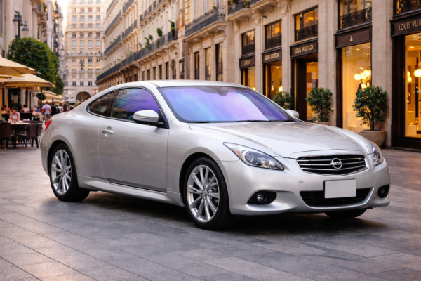 🚗 日産スカイライン 2ドアクーペ CKV36(H19.10〜)のガラス形状に合わせて設計された、ゼノン2オーロラ84のカット済みカーフィルムです。🌈 フロントガラス・運転席・助手席の3面はすべて同等のオーロラカラーで統一し、基準画像どおりの青紫〜バイオレット系の発色と角度によるプリズム感をそのまま再現しています。☀️ クーペボディのシャープなシルエットに対して、光の入り方によって表情が変わるガラスの色味が自然に映える印象です。🛠️ 車種・型式・年式専用のカット済み仕様のため、施工時のガラスラインを想定しやすく、実車イメージを掴みやすい構成になっています。✨ リア側はプライバシーガラス表現とし、フロント3面のオーロラカラーとのコントラストを意識した仕上がりです。