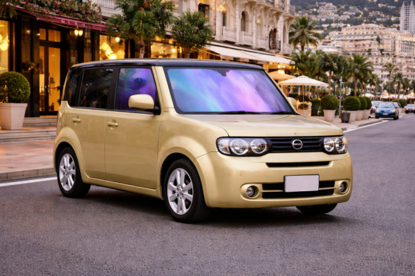 🚗 日産キューブ Z12(H20.11〜)に合わせて用意されたゼノン2オーロラ84のカット済みカーフィルムです。🌈 フロントガラス・運転席・助手席の3面は、提示された基準画像どおりの青紫〜バイオレット系オーロラカラーで同等に統一され、角度によって現れるプリズム感も自然な印象です。☀️ 街中やショッピング街のような光源が多い環境でも、ガラス表情の変化がわかりやすく、キューブ特有のボディデザインとも違和感なく馴染みます。🛠️ 車種・型式・年式専用のカット済み仕様のため、ガラス形状を想定しやすく、仕上がりイメージを掴みやすい構成です。✨ リア側はプライバシーガラス表現とし、フロント3面のオーロラカラーとのコントラストを意識した見え方になっています。