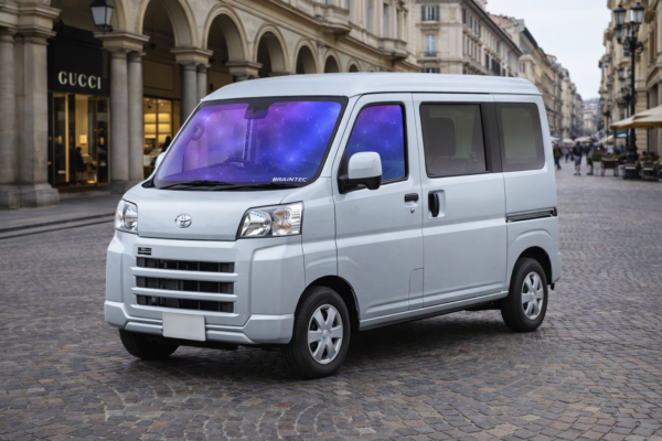 🚗 ダイハツ ハイゼット カーゴ S700V(R3.12〜)に合わせたカット済み仕様のゼノン2オーロラ84で、車両ガラス形状に沿った自然なフィッティングを想定した構成です。🌈 フロントガラス・運転席・助手席の3面はすべて同一カラーで、基準画像そのままの青紫〜バイオレット系オーロラ発色を採用しており、ムラや誇張感のない均一な見え方が特徴です。☀️ 光の当たり方や角度によって表情が変わる淡いオーロラ感は、日常走行時でも主張しすぎず、ハイゼット カーゴ S700Vのスクエアな車体と相性よく映ります。🛠️ 車種専用のカット済みフィルムとして検討しやすく、フロント3面のカラー統一を重視したい方に向いた内容です。✨ リア側はプライバシーガラス表現を前提に、フロント3面のゼノン2オーロラ84の色味を主役として楽しむ使い方を想定しています。