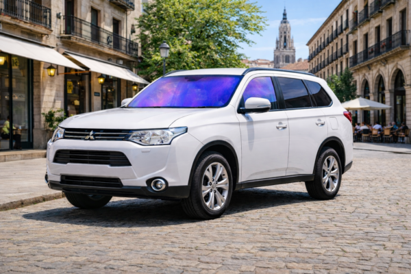 🚗 三菱 アウトランダー GF7W(H24.10〜)に対応したゼノン2オーロラ84の運転席・助手席用カット済みカーフィルムです。🌈 フロントガラス・運転席・助手席の3面は、提示された基準画像そのままのゼノン2オーロラカラーを採用し、青紫〜バイオレット系のオーロラ発色と角度による色味変化を自然に表現します。☀️ 昼間の屋外環境でも色の薄さやムラが出にくいイメージで、透明感と反射感のバランスを重視した見え方を想定しています。🛠️ 車種専用カット済み仕様のため、アウトランダー GF7Wのガラス形状に沿った仕上がりをイメージしやすい構成です。✨ リア3面およびリア5面はプライバシーガラス表現とし、フロント3面とのコントラストも分かりやすい内容になっています。