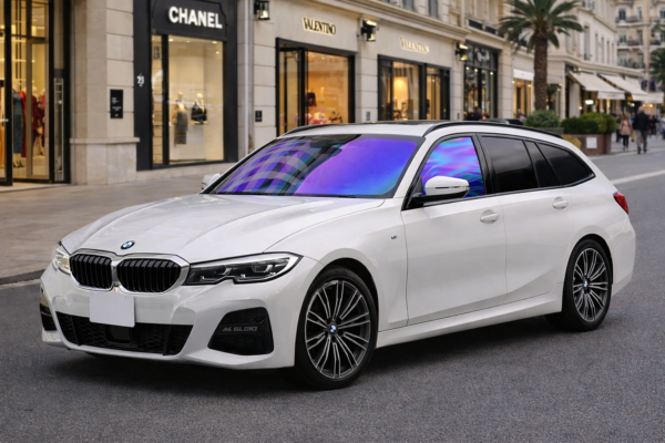 🚗 BMW 3シリーズ ワゴン(G21)6L20 2019,11〜専用設計のシャインゴースト フィルムは、画像と同じブルー〜パープル系に変化するオーロラ発色をそのまま再現できるモデルです。光の当たり方や見る角度によって青紫からエメラルド調へと移ろう独特の輝きが、BMW 3シリーズ ワゴン(G21)のシャープなフロントデザインと美しく調和します。🌈 透明感を保ちながらも存在感のある色味で、日中の自然光や都市の街並みを受けて上質な反射を演出。☀️ BMW 3シリーズ ワゴン(G21)のボディラインを崩さず、洗練されたドレスアップが可能です。🛠️ 車種別カット済み仕様のため、BMW 3シリーズ ワゴン(G21)6L20へフィットする形状で設計されており、施工時の作業性にも配慮されています。✨ BMW 3シリーズ ワゴン(G21)にシャインゴーストを取り入れることで、スポーティさとラグジュアリー感を両立したフロントビューへとアップデートできます。