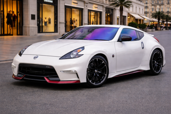 🚗 日産 フェアレディZ Z34(H20,12〜)専用設計のシャインゴーストフィルムは、運転席・助手席のガラス形状に合わせてカット済み。フェアレディZ Z34のシャープなボディラインと相性の良い、ブルー〜パープル系へと角度で変化するオーロラ発色が特徴です。
