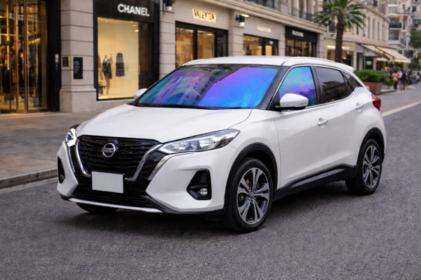 🚗 日産 キックス P15(R2.6〜)専用のシャインゴースト フィルムは、フロントガラス・運転席・助手席の3面を同一オーロラカラーで仕上げるカット済み仕様です。日産 キックス P15のシャープなヘッドライトと立体的なフロントフェイスに、ブルーからパープルへと角度で変化する発色が重なり、SUVらしい力強さに個性を加えます。🌈 日産 キックス P15の広いフロントガラスに広がるプリズム感は、街中の建物や空の色を受けて多彩な表情を演出し、見る位置によって印象が変わります。☀️ 透明感を残しながらも独特の反射を持つため、日産 キックス P15のボディカラーとのコントラストも自然です。🛠️ 車種専用カット設計により、日産 キックス P15のガラス形状へ合わせやすく、フロント3面を統一することでバランスの取れた仕上がりになります。✨ 日産 キックス P15にさりげない変化を求める方や、シャインゴースト特有のオーロラ発色を楽しみたい方に適したフィルム構成です。