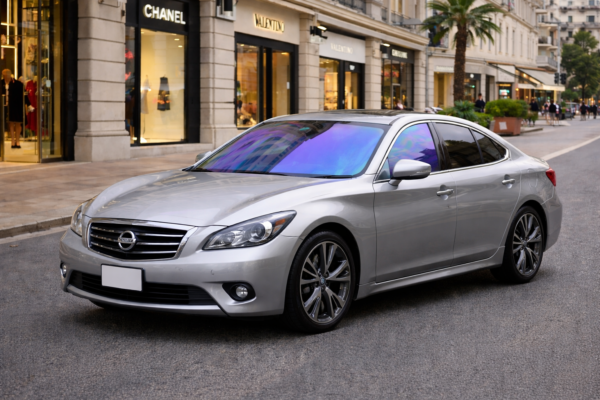 🚗 日産 フーガ Y51(H21.11〜)専用設計のシャインゴースト運転席・助手席セットです。車種専用カット済みフィルムのため、日産 フーガ Y51のガラス形状に合わせたフィッティングを前提とした構成になっています。🌈 シャインゴースト特有のオーロラ発色は、光の角度によってブルー〜パープルへと表情が変化し、フーガのラグジュアリーなボディラインと自然に調和します。☀️ 日中の屋外環境でも発色が過度にならず、透過感を残したままガラス面の存在感を高める色味バランスです。🛠️ 運転席・助手席の2面を同一カラーで統一することで、日産 フーガ Y51のサイドビューに一体感を持たせた印象に仕上がります。✨ セダンらしい重厚感を活かしながら、ガラス面にさりげない個性を加えたい方に適した仕様です。