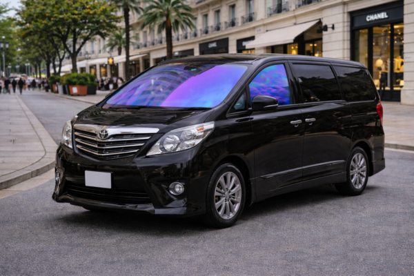 🚗 トヨタ 適合 アルファード ANH20W H20.5〜 専用設計のシャインゴースト フィルムは、運転席・助手席に施工することで、角度によって青紫からバイオレットへと変化するオーロラ発色を演出します。アルファード ANH20W の重厚なフロントフェイスとの相性も良く、存在感をさらに高めるカスタムが可能です。