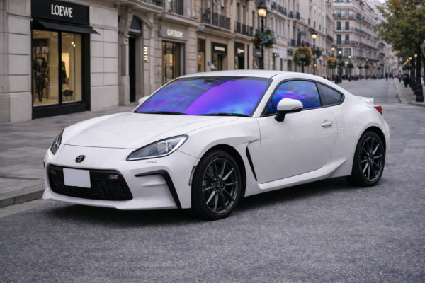 🚗 トヨタ GR86(ZN8 R3,10〜)専用カット済みシャインゴーストフィルム。スポーツクーペのシャープなボディラインに、紫〜ブルーへ変化するオーロラ発色を組み合わせることで、GR86の存在感をさらに際立たせます。
