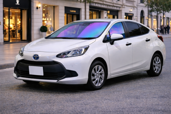 🌈 シャインゴースト特有の青〜紫へと変化する発色は、光の角度や時間帯によって印象が変わります。トヨタ アクア MXPK10の透明ガラスへ施工することで、自然な発色とクリアな視界バランスを両立。アクア MXPK10の都会的なスタイルをより際立たせます。