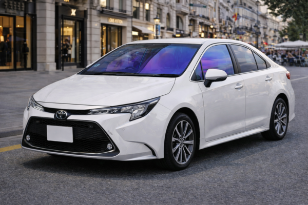 🚗 トヨタ カローラ セダン ZWE211(2019.9〜)専用のシャインゴーストフィルム施工イメージです。🌈 フロントガラス・運転席・助手席へ、紫〜ブルーへと変化するオーロラ発色をそのまま再現したカラーを採用。光の角度や周囲環境によって発色が繊細に変わり、上品さと個性を両立します。☀️ 日中は透明感を保ちながら発色し、街並みの反射光を受けることで深みのある色味へと変化。🛠️ 車種専用カット設計により、カローラ セダン ZWE211のガラス形状に自然にフィットする仕様です。✨ ゴースト特有の反射感と透明感を活かしたドレスアップイメージとしてご確認ください。