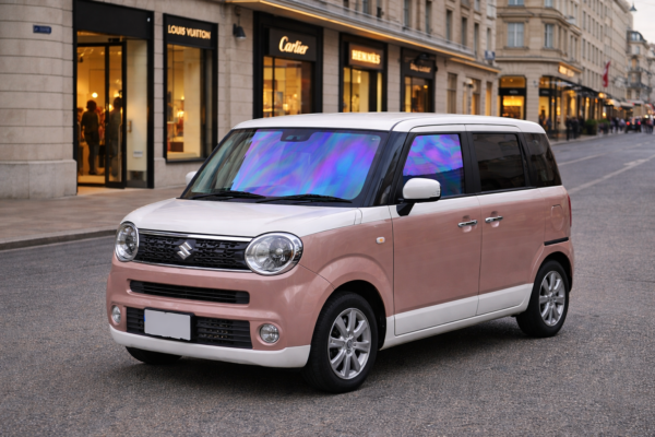 🚗 スズキ ワゴンRスマイル MX81S(R3,9〜)専用設計のシャインゴーストは、運転席・助手席ガラスにぴったりフィットするカット済み仕様。ワゴンRスマイル MX81Sの丸みあるデザインを崩さず、自然な装着イメージを再現できる構成です。🌈 シャインゴースト特有の紫〜ブルー系オーロラ発色が光の角度で変化し、ワゴンRスマイル MX81Sのフロントフェイスに上質な個性をプラスします。☀️ 日中でも透明感を維持しながら色味が浮かび上がるため、視界を確保しつつドレスアップを楽しめるのが特徴です。🛠️ 車種専用カットにより、ガラスラインに沿った自然な仕上がりを想定。純正イメージを大きく損なわず、ワゴンRスマイル MX81Sにさりげない存在感を与えます。✨ ワゴンRスマイル MX81Sへシャインゴーストを施工することで、日常使いの軽自動車でもワンランク上のフロント演出が可能になります。