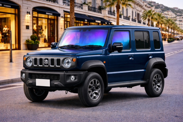 🚗 スズキ ジムニー ノマド 5ドア JC74W(R7,4〜)専用設計のシャインゴーストフィルム。運転席・助手席に対応した車種別カット済みタイプです。ジムニー ノマド 5ドア JC74Wのスクエアなボディラインに、独特のオーロラ発色が映えます。