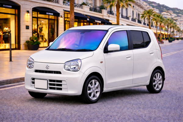 🚗 スズキ アルト HA97S(R3,12〜)専用設計のシャインゴーストフィルム。運転席・助手席専用のカット済みタイプで、HA97Sのガラス形状に合わせたフィット感を実現しています。