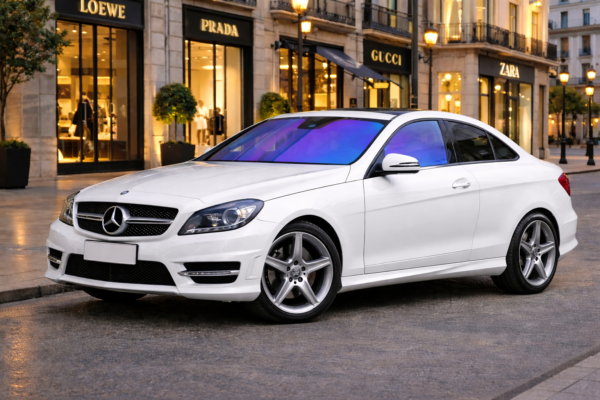 🚗 メルセデス・ベンツ Cクラスクーペ C204(204347 H23,10〜)専用設計のシャインゴースト フィルム。流れるようなクーペフォルムに、ブルーからパープルへと変化するオーロラ発色をプラスし、より印象的なフロントビューを演出します。🌈 フロントガラスと同等カラーで運転席・助手席を統一することで、左右の色味バランスを整え、Cクラスクーペ C204の上質感を損なわない仕上がりを実現。☀️ 光の当たり方や時間帯により表情が変わり、街中でも自然に個性を主張できます。🛠️ 車種専用カット済み仕様のため、Cクラスクーペ C204のガラス形状に合わせた設計。✨ 純正の高級感を活かしながらドレスアップを楽しみたいオーナーに適したシャインゴースト フィルムです。