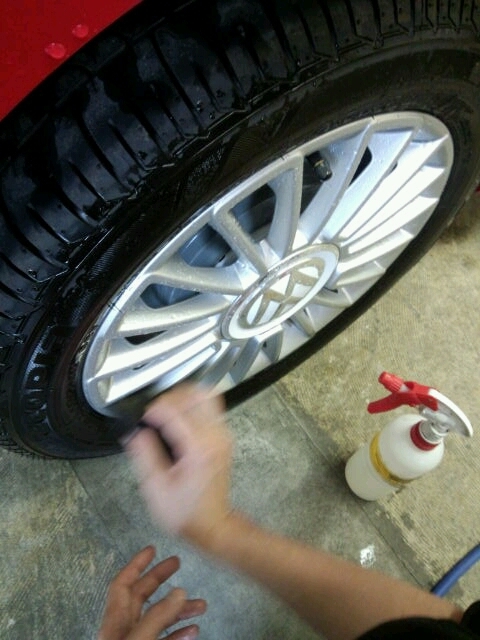 昨日お客様がいらっしゃった時にホイール周りの鉄粉落としをやってしまったので