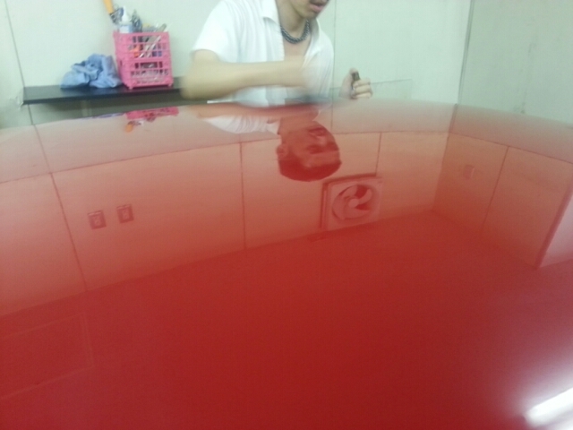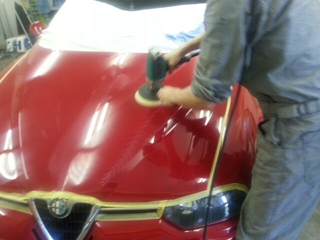 ↓ボンネット左側がポリッシャーで磨いた後です。