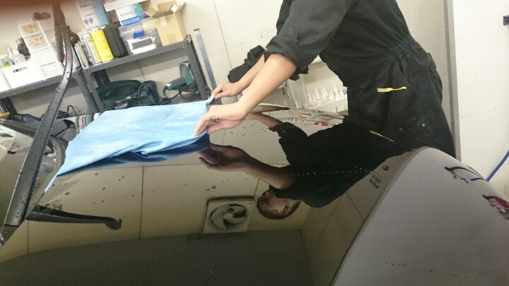 最終仕上げには鏡面仕上げ剤を施工します。かなり光沢がアップします。