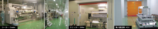 ▲ クリーンルームでのフィルム製造風景(コーター/スリッター/AGV導入ライン)